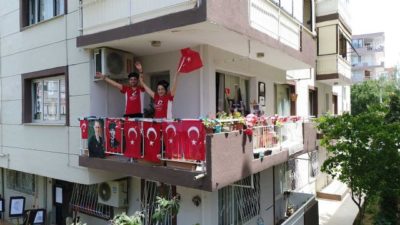 Narlıdere’nin her yerine 19 Mayıs coşkusunu yayan Apartman Festivali’nde, bazı apartmanlardan trompet sesi yükseldi, minik Ada