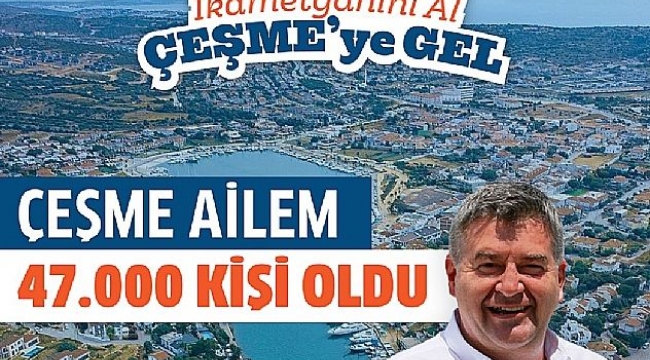 İzmir'in en gözde ve canlı yazlık ilçesi olan Çeşme 50 bin nüfusa ulaşabilmek için 6 aydır çalışıyor. Çeşme Belediye Başkanı Ekrem Oran'ın Eylül 2019'da “Birinci ikameti Çeşme’ye taşıyoruz” diyerek başlattığı kampanyaya aradan geçen 6 ayda 2 bin 600 kişi olumlu yanıt vermiş durumda. Belediye, 6 ay içinde nüfusunu 44 bin 400'den 11 Şubat itibariyle paylaşılan afişle 47 bine çıkardığını duyurdu. Başkan Oran ise 2021 başında nüfusun 46 bin 93'e ulaştığını belirtti. Çeşme Kaymakamlığı verilerine göre Çeşme'de 55 bin 733 konut bulunuyor. Veriler karşılaştırıldığında Çeşme'deki konutların en az yarısında ikamet eden bir kişi bile görünmüyor. İlçede bir taraftan da yeni yazlık ve konut projeleri devam etmekte. Tüm bunlara rağmen ilçenin köylerinde yerli halk ise imar yasaklarından dolayı konut üretme sıkıntısı yaşamakta.