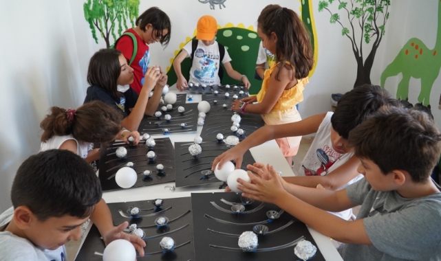 YERLEŞKEDE NELER VAR?Kampüsün açık alanında paleontoloji adası, biyolojik gölet, fosil kazı adası ve inşaat adası gibi çeşitli bölümler bulunuyor. Kapalı kısımda ise yardımseverlik, dostluk, doğruluk, sorumluluk, sevgi, saygı ve hoşgörü gibi evrensel değerlerin anlatıldığı sergi alanları yer alıyor. Alanında uzman eğitmenler eşliğinde çeşitli atölye ve etkinlikler düzenleniyor. Tüm bu uygulamalarla, çocukların merak duygularını ateşleyerek hayal güçlerinin, yaratıcılıklarının ve eleştirel düşünme becerilerinin oyunlarla geliştirilmesi; evrensel değerleri benimsemiş ve bilime ilgi duyan nesillerin yetiştirilmesi amaçlanıyor. YAZA ÖZEL ATÖLYELER Yaz dönemi boyunca haftanın her günü 10.00 ila 20.00 saatleri arasında ziyaretçilerini ağırlayan Evrensel Çocuk Merkezi’nde Işığın Gizemi (8-12 yaş), Renkli Kuş Yuvası (4-7 yaş), Tarım Dostu Böcek (4-7 yaş), Dino Kaşifler (4-7 yaş) ve Etkileşimli Hikaye Anlatımı (0-6 yaş) başlıklı 5 farklı atölye yapılıyor. Kampüs içerisindeki Dino Kafe ise pazartesi hariç her gün 10.00 ila 19.00 saatleri arasında lezzetli menüleri ile konuklara hizmet vermeyi sürdürüyor. Evrensel Çocuk Merkezi’ni ziyaret etmek isteyenler, (0232) 324 63 43 numaralı telefondan da detaylı bilgi alabiliyor.