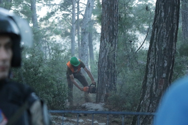 Sabahın erken saatlerinde nöbet alanı kuşatılırken, saat 6.00 sıralarında ağaç kesimi de başladı.