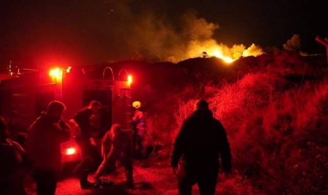 Alevler geceyi aydınlattı... Çeşme'de korkutan yangın