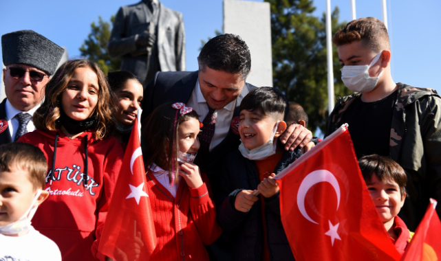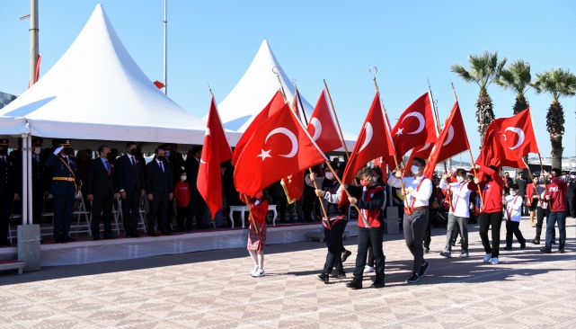 ALİAĞA KAYMAKAMI ÖMER KARAMAN; “CUMHURİYET AKILDIR, ADALETTİR”Aliağa Kaymakamı Ömer Karaman ise yaptığı konuşmada şunları söyledi; “Cumhuriyet, egemenliğin kayıtsız şartsız millete ait olduğunun tescilidir. Cumhuriyet akıldır, adalettir. Büyük bir medeniyetin mirasçısı olan devletimiz kurulduğu günden bu yana hızla büyümüş, son yıllarda herkesin gıpta ile baktığı dev projeleri hayata geçirerek dünyanın en güçlü ülkelerinden biri olma yolunda hızla ilerlemektedir. Binlerce yıllık şanlı tarihimiz boyunca her zaman yeniden doğuşlara ve şanlı yürüyüşlere imza atmış başta Cumhuriyetimizin kurucusu Büyük Önder Gazi Mustafa Kemal Atatürk ve silah arkadaşları olma üzere tüm şehitlerimizi, gazilerimizi minnet ve şükranla yad ediyorum” ŞİİR VE GÖSTERİLER BEĞENİ TOPLADIKonuşmaların ardından 29 Ekim Cumhuriyet koşusunda dereceye giren öğrencilere ödülleri takdim edildi. Şehit Murat Coşkun Ortaokulu öğrencileri tarafından organize edilen gösteriler büyük beğeni topladı. Öğrencilerin “Cumhuriyet Korosu”, ortaokulu öğrencisi Özcan Ay’ın “Atatürk ve Cumhuriyet” konulu şiiri ve halk oyunları gösterisi ile devam eden program Engelsiz Mehteran Takımının mini konseri ve Aliağa Belediye Bandosu eşliğinde yapılan tören geçişiyle son buldu. Programın ardından Aliağa Amatör Balıkçılar ve Deniz Sporları Derneği (ALDER) ile Aliağa Motosiklet ve Bisiklet Spor Kulübü (ALMOB) tarafından organize edilen gösteriler de programa renk kattı.