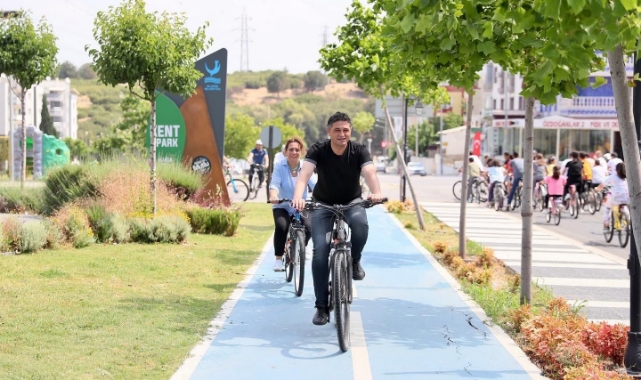 Bisiklet dağıtımının ardından Aliağa Kaymakamı Ömer Karaman, Aliağa Belediye Başkanı Serkan Acar ve beraberindeki heyet bisiklet kullanımını özendirmek amacıyla öğrencilerle birlikte Kent Park’ta bisiklet sürdü.