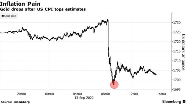 Altın fiyatları ABD enflasyonu verilerinin ardından dün yüzde 1’in üzerinde geriledikten sonra bugün ABD Merkez Bankası’nın (Fed) faiz artırımlarının sürmesiyle yatay seyretti.Enflasyon rakamlarının ardından ABD Merkez Bankası’nın (Fed) faizleri artırma konusunda daha sert bir politika izleyeceği yönündeki endişeler artarken altın fiyatlarında düşüş derinleşti.Dün enflasyon açıklanmadan önce ons başına 1730 dolar seviyelerinde bulunan altın verinin açıklanmasının ardından kritik seviye olan 1700 dolar seviyesine çekildi.