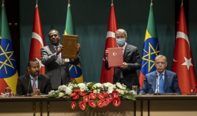 NE OLMUŞTU?Cumhurbaşkanı Erdoğan, Etiyopya Başbakanı Abiy Ahmed ile Cumhurbaşkanlığı Sarayı'nda görüştü. Ortak düzenlenen basın toplantısında tercüme skandalı yaşandı. Etiyopya Başbakanı'nın, "Büyük reformist ve karizmatik lider Mustafa Kemal Atatürk" sözü çevrilmedi. Çevirmen "Mustafa Kemal Atatürk" sözlerini "...karizmatik liderinden bu yana" diyerek Erdoğan'a bağladı."Cumhurbaşkanı Erdoğan, Etiyopya Başbakanı Abiy Ahmed’i ağırlıyor. Ortak basın toplantısı yapıyorlar ve toplantıda simultane tercüman görev yapıyor. Etiyopya Başbakanı, konuşmasında 'Son derece büyük ve karizmatik lider Mustafa Kemal Atatürk’ten bu yana... Sayın Cumhurbaşkanı Recep Tayyip Erdoğan’ın önderliğinde...' diye bir cümle kuruyor. Fakat o da ne! Simultane tercümanımız, bütün kelimeleri çeviriyor, mustafa kemal atatürk hariç.
