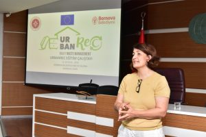 URBANREC Projesi’ni yaygınlaştırmak amacıyla daha önce de İzmir Yüksek Teknoloji Enstitüsü ile birlikte kurum içi eğitim faaliyetlerini başlattı. Bu kapsamda Bornova Belediyesi Kültür Merkezi’nde muhtarların ve belediye çalışanlarının katıldığı eğitim programı düzenlendi. Projenin ayrıntılarını İYTE Öğretim Üyesi Prof.Dr. Aysun Sofuoğlu anlattı. Üç gün süren ve üç ayrı grubun katıldığı eğitimlerin sonunda katılımcılar, Bornova Belediyesi’nin kurduğu Atık Getirme Merkezi’ni de ziyaret etti.