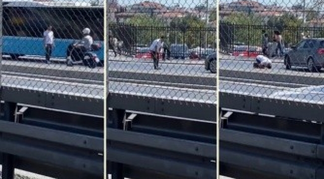 İstanbul Bahçelievler‘de bulunan E-5 yan yolunda kaydedilen görüntülerde, bir şahıs akan trafiğin ortasında namaza kıldı. Şahıs, kısa süreli trafiğin aksamasına neden oldu.