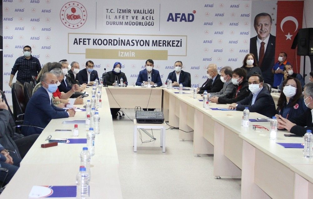 Bakan Kurum, açıklamasını şöyle tamamladı: "Seferihisar'da hasar tespit çalışmaları tamamlandı. Tsunamiden zarar gören 122 esnafa ödemeler başladı. Tespitler doğrultusunda ödemeler devam edecek. Misafirhanelerimiz 7 bin 600 kapasiteli ve şuanda 139 vatandaşımız var. Çadırlarda değil yurtlarımızda yeteri kapasitede yer var. Her türlü ihtiyacımızı orada gidebiliyoruz. Dileyen vatandaşlarımız burada kalabilir. Bölgeye 3 bin 569 çadır sevk edildi. 2 bin 622 çadır kuruldu. Kurulu boş çadır sayımız 943. Yani barınma ihtiyacı olan vatandaşlar muhtarlara başvurabilirler. Geçici barınma ihtiyacını gidermek için 46 bin metrekarelik alana bin konteyner kurulacak. Kalıcı konutlar yapılana kadar bugün çalışmalar başladı. 20 gün içinde tamamlayıp İzmirli vatandaşların hizmetine sunulmuş olacak. Tüm dualarımız İzmir için çalışmalarımızı yapmaya devam edeceğiz. Umutlarımız hiç tükenmedi. 91 saat sonra Ayda yavrumuzu enkaz altından çıkardık. Yeni İdil'leri, Ayda'ları, Elif'leri çıkarmaya devam edeceğiz. Hayatını kaybeden vatandaşlarımıza Allah'tan rahmet diliyorum yaralılara da acil şifalar diliyorum"