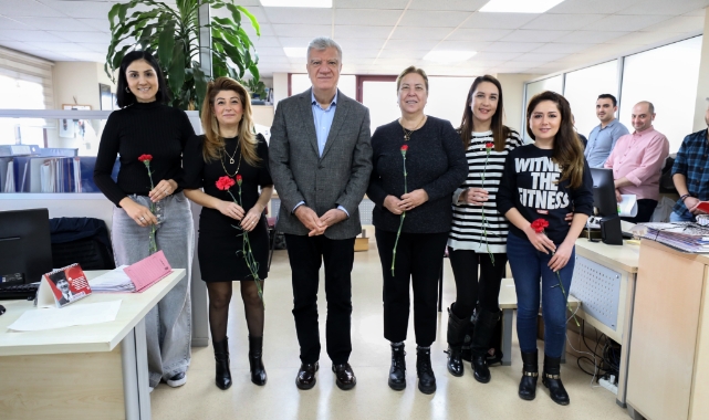 Narlıdere Belediye Başkanı Ali Engin, 8 Mart Dünya Emekçi Kadınlar Günü’nde belediye bünyesinde görev yapan kadın çalışanlara bir araya geldi. Narlıdereliler için özveriyle çalışan kadınlara karanfil dağıtan Başkan Engin, her türlü şiddet ve ayrımcılığın son bulduğu; kadınların iş dünyasında ve sosyal-kültürel hayatta eşit şartlarla yaşadığı bir dünya diledi.