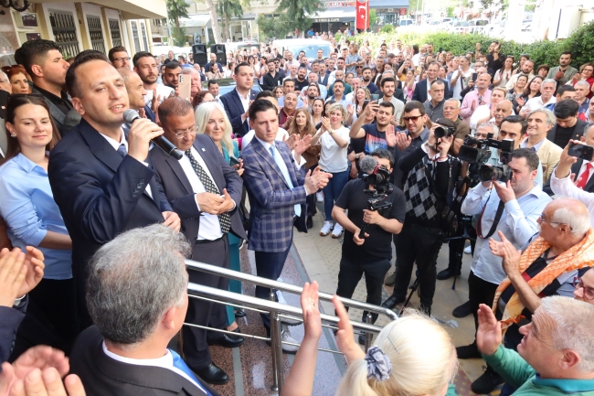 Konuşmasına CHP örgütü ile birlikte Atatürk Anıtı’nın önünde olmaktan büyük bir onur duyduğunu söyleyerek başlayan Başkan Ömer Eşki “Yorucu bir süreç geçirdik ama seçim akşamı tüm yorgunluğumuz silindi. Yıllardır seçim akşamları büyük bir hüzünle bakardık televizyon ekranlarına ve sapsarı bir Türkiye görürdük. Moraller bozulduğunda ‘Hadi İzmir'i görelim’ derlerdi. Şimdi o sarı harita sizlerin emeğiyle, inancıyla, çabasıyla bayrağımızın rengine döndü, kıpkırmızı oldu. Ben 1986 doğumluyum, ilk defa partimizin birinci parti olduğunu gördüm. Bu onur her şeyin üzerindedir. İnanın belediye başkanı olmaktan çok buna sevindim” dedi.
