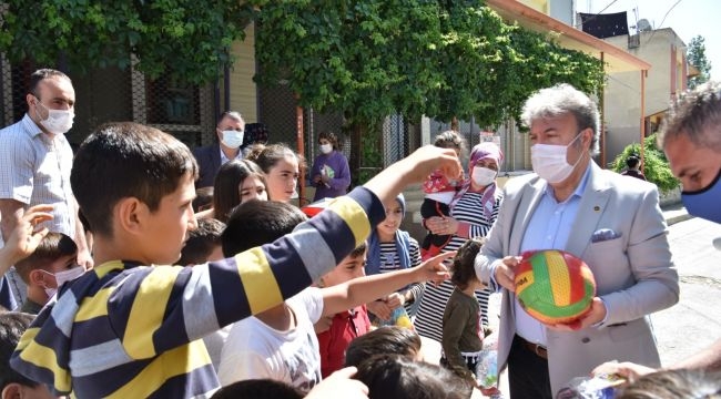 Ramazan Bayramı öncesi mahalleleri dolaşarak vatandaşların bayramını kutlayan Bornova Belediye Başkanı Dr. Mustafa İduğ, ihtiyaç sahibi ailelerin çocuklarının da yüzünü güldürdü. Koronavirüs salgını nedeniyle evlerinde kapalı kalan çocuklara bayram hediyesi olarak oyuncak dağıttı.