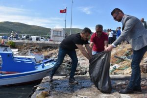 Dikili Belediye Başkanı Adil Kırgöz, vatandaşlarla birlikte deniz temizliği gerçekleştirdi.