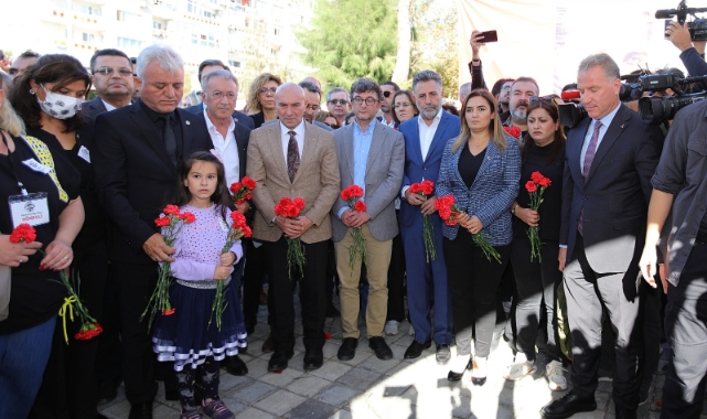 Bayraklı Belediye Başkanı Serdar Sandal, İzmir Büyükşehir Belediyesi tarafından depremde hayatını kaybedenler anısına düzenlenen anma etkinliğinde depremzedelerin sorunlarının çözümü için yetkililere destek çağrısında bulundu