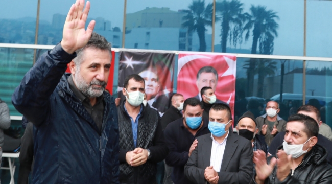 DİSK Genel İş 6 No'lu Şube’ye bağlı çalışanlar da şiddetli yağmura rağmen ana bina önünde toplanarak, Başkan Sandal'a yeni yıl sürprizi yaptı. Yağmurun altında çalışanlara seslenen Sandal, "Sizlerle onur duyuyorum, gurur duyuyorum. bayraklı belediyesi çalışmalarıyla tüm belediyelere örnek olacak. Her zaman çalışan emekçinin hakkını savunacağız, yanında olacağız. Hepinize mutlu yıllar diliyorum" diye konuştu.
