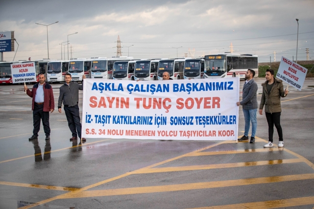 Başkan Soyer garajda şoförlerin çiçek ve pankartlarıyla karşılandı. Başkan Soyer’e, CHP Menemen İlçe Başkanı Ömer Güney, İzmir Büyükşehir Belediyesi Genel Sekreteri Barış Karcı, ESHOT Genel Müdürü Erhan Bey, kooperatif başkanları, meclis üyeleri ve muhtarlar eşlik etti.
