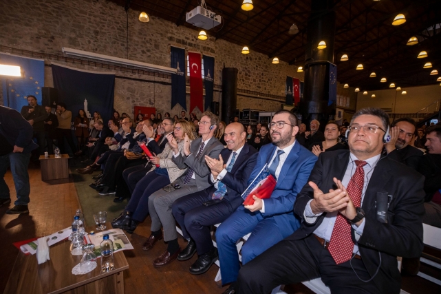 Programın açılışında konuşan İzmir Büyükşehir Belediye Başkanı Tunç Soyer, demokrasinin insanlığın en büyük inovasyonlarından biri olduğunu belirterek, “AB, ülkeler arasındaki farklılıkları bir tarafa koymayı başardı ve buradan bir ortak gelecek kurma iradesi ortaya koydu. Ortak gelecek inşa etme meselesi hepimizin önceliği olmak zorunda. Çünkü içinde yer aldığımız bu büyük evren büyük bir tehditle karşı karşıya. Bu büyük tehdit, aramızdaki farklılıkları bir tarafa koyup, o ortak gelecek tahayyülünü daha kuvvetli bir biçimde ortaya çıkarmaktan geçiyor. Artık bu gezegenin üzerinde yaşayan hiçbir bireyin sağlıklı olmasına imkan yok. Hep beraber ve şimdi harekete geçme zamanı. Ortaya konulacak bütün projeler, bütün çalışmalar bu ortak aklın bir parçası, bu ortak çarkın dişlisi olmayı başarmak zorunda” diye konuştu.