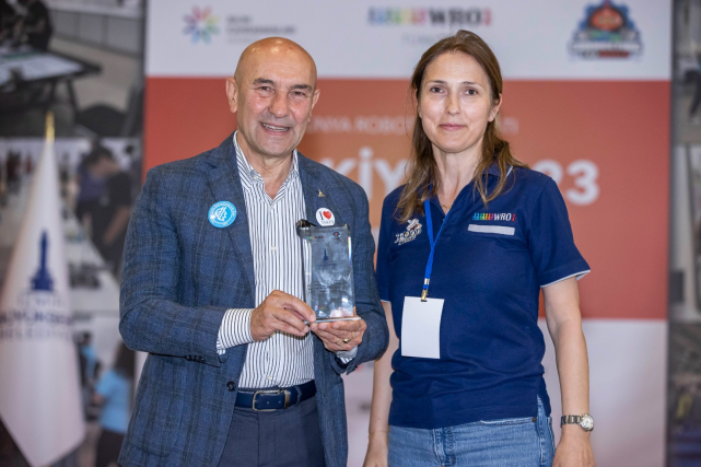İzmir Büyükşehir Belediye Başkanı Tunç Soyer, İZFAŞ'ın destekleriyle Bilim Kahramanları Derneği tarafından düzenlenen Dünya Robot Olimpiyatı Türkiye 2023’ün kapanış ve ödül törenine katıldı. Kazanan takımlara ödüllerin verildiği Fuar İzmir’deki programda Bilim Kahramanları Derneği Yönetim Kurulu Başkan Vekili Fatma Bezek, Bilim Kahramanları Derneği Genel Sekreteri Aslı Yurtseven, İZFAŞ Genel Müdürü Canan Karaosmanoğlu Alıcı, dernek yöneticileri, yarışmacı takımların temsilcileri ve aileleri yer aldı.“Geleceğimizin en kuvvetli ışığı sizlersiniz”İzmir Büyükşehir Belediye Başkanı Tunç Soyer, 2024 yılının Kasım ayında Dünya Robot Olimpiyatı (World Robot Olympiad-WRO) Uluslararası Finali’ne İzmir’in ev sahipliği yapacağını söyleyerek çok heyecanlı olduklarını vurguladı. Başkan Soyer “Bizi gururlandıran tüm gençlerimize onların yolunu açan velilere, bilim kahramanlarına, destekçilerine, İZFAŞ’a, gönüllülere çok teşekkür ediyorum. Geleceğimizin başka bir ışığı yok. Geleceğimizin en kuvvetli ışığı sizlersiniz, bu genç yavrularımız, bu pırıl pırıl zihinler, çalışan akıllar. Çok mutluyum. Şurada kısacık zaman içinde o kadar güzel projelerle karşılaştım ki hakikaten her birinizle iftihar ediyoruz. Bütün çocuklarımızı kucaklıyorum, bütün kalbimle tebrik ediyorum. İnşallah 2024’te dünyada varlığınızı göstermek için çok büyük bir fırsatı hep beraber burada yaratıyor olacağız. İyi ki varsınız, iyi ki buradasınız” diye konuştu.Açık Klasman Küçük Yıldızlar’da birinciliği kazanan TAKEV Özel Ortaokulu’na ödülünü Başkan Soyer verdi.