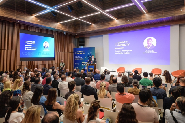 İzmir Büyükşehir Belediye Başkanı Dr. Cemil Tugay, İzQ İnovasyon Merkezi’nde Avrupa İnovasyon ve Teknoloji Enstitüsü Desteği İle düzenlenen “Kapsayıcı ve Erişilebilir Kentsel Mobilite” konulu #CONNECT4MOBILITY 2024 etkinliğinin açılış konuşmasını yaptı. Toplu ulaşımda konforu artıran ve araç trafiğini azaltan yeni alternatiflerin oluşturulması gerektiğini vurgulayan Başkan Tugay, Barselona ve Venedik’ten birer uygulama örneği verdi.