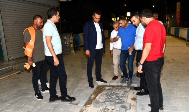 İncelemelerin ardından eldiven ve yeleğini giyen Başkan Yıldız, gece mesaisini sürdüren personelle birlikte taş döşeme ve istifleme çalışmalarında bulundu. Yıldız, çalışmalar sırasında meydandan geçen vatandaşlarla sohbet etmeyi ve önerilerini dinlemeyi de ihmal etmedi.