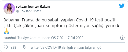 Kızı Roksan Kunter, babasının testinin pozitif çıktığını duyurdu.
