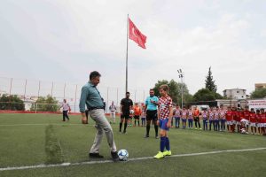 Turnuvanın açılışına katılan Başkan Sandal, organizasyonda emeği geçenlere teşekkür ederek, “İstiyoruz ki; bu tür faaliyetleri birazcık daha artırarak, niteliği ile daha sağlıklı alana taşıyarak, gençlerimizi daha güzel yarınlara hazırlayalım. Şimdi karşımda 11 yaşında pırıl pırıl gençlerimiz var. Bu gençlerimiz inanıyorum ki; ileride hem okullarında hem ilgili yetenekleriyle spor dallarında çok çok başarılı olacaklar. Bu çocukları bugün burada görmek bizim için, bir yerel yönetici olarak oldukça kayda değer bir durum. O yüzden spor kulüpleri yöneticilerini, hocalarını, antrenörlerini hepsini kutluyorum. Turnuvamızın hayırlı ve uğurlu olmasını diliyorum” dedi. Turnuva Bayraklı Belediye Başkanı Serdar Sandal’ın santra vuruşu ile başladı. Sandal, turnuvaya katılan kalecileri de penaltı atışı yaparak test etti.