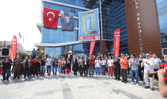 Disk 6 Nolu Şube Başkanı Değer Yıldız, “İşçi sınıfı var olduğu sürece bu ülkede yetimin hakkını yiyenlere, yolsuzluk yapanlara, ülkenin kaynaklarını çetelere aktaranlara fırsat vermeyeceğiz. Ülkemizi içinde bulunduğu karanlıktan hep birlikte el birliğiyle kurtaracağız” dedi.