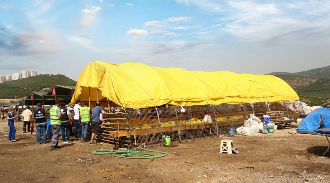 Kurban Bayramı öncesi bayraklı belediyesi Zabıta Müdürlüğü koordinesinde Dağançay kurban satış yerinde yürütülen çalışmalar kapsamında ilgili birimlerde görevli ekipler, gerekli hazırlıkları tamamlıyor.