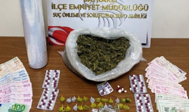 İzmir'in Bayraklı ilçesinde, ev ve depoya yapılan baskında 1 kilo 129 gram esrar ile 63 uyuşturucu hap ele geçirildi. Gözaltına alınan 2 şüpheli ise tutuklandı.