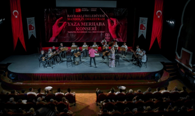 Türkiye’de, bir ilçe belediyesi bünyesinde kurulan ilk Mandolin Orkestrası olma özelliği taşıyan Bayraklı Belediyesi Mandolin Orkestrası, Yaza Merhaba Konseri ile bir kez daha büyüledi! Tarihi İZDOB Elhamra Sahnesi’nde gerçekleşen konsere sanatseverler büyük ilgi gösterdi. Şef Lalecan Özay Muzaffer yönetimindeki konserin solistliğini Soprano Ayşe Şener Özmen üstlendi. Vals, tango, napoliten, sirtaki ve film müzikleri beğeni kazandı. Geceye; Belediye Başkanı Serdar Sandal, eşi Aylin Sandal, orkestranın sanat yönetmeni ve dünyaca ünlü Şef Gürer Aykal, CHP Bayraklı İlçe Başkanı Didem Gültekin, TOBAV İzmir Şube Başkanı Hale Gökalp Sezer ve çok sayıda sanatsever katıldı.