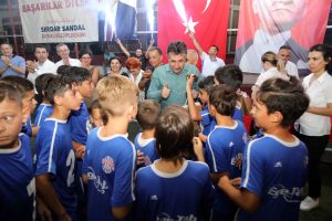 Kupa töreninde konuşan Bayraklı Belediye Başkanı Serdar Sandal, “Turnuvaya katılan bütün takımlarımızı kutluyorum, kulüplerimizi kutluyorum, hocalarını kutluyorum, ailelerini kutluyorum, hakemlerimize emeklerinden dolayı şükranlarımı sunuyorum. Çok güzel bir turnuva oldu. Aslında bu turnuvanın kazananı kaybedeni yok. Önümüzdeki süreçlerde bunu biraz daha büyüterek daha güçlü daha güzel turnuvalarda inşallah hep beraber oluruz. Katıldığınız için hepinize çok teşekkür ediyorum. Sağ olun var olun” dedi.