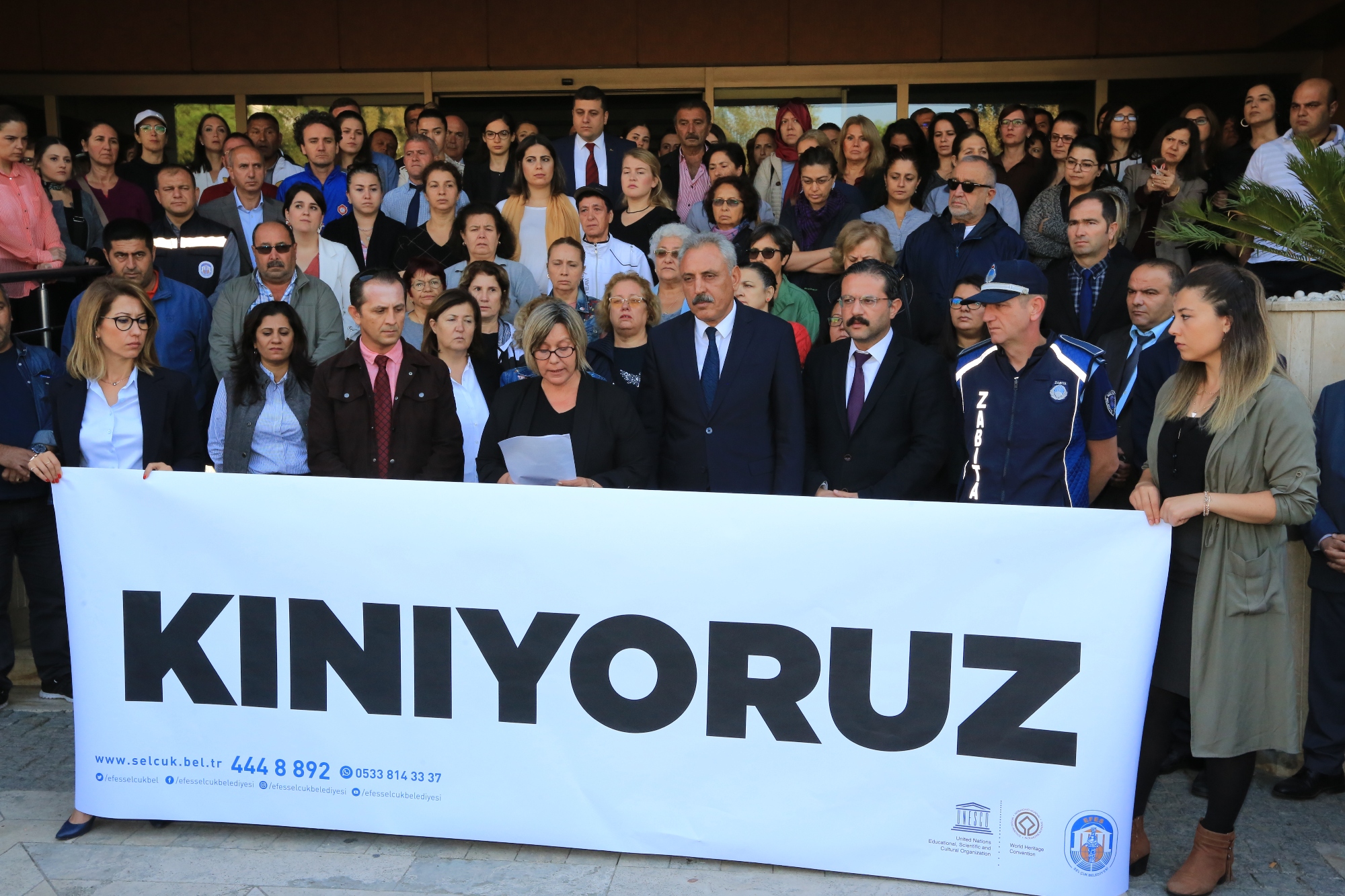 29 Ekim Cumhuriyet Bayramı kutlamaları kapsamında Şirince köyünü ziyaret eden ve bu ziyarette eski Belediye Başkanı Hüseyin Vefa Ülgür ve yakınları tarafından sözlü ve fiziki saldırıya uğrayan Efes Selçuk Belediye Başkanı Filiz Ceritoğlu Sengel’e Belediye Personeli sahip çıktı. Belediye hizmet binası önünde yapılan basın açıklamasında tüm personel Başkan Sengel’e ve Meclis üyelerine yapılan saldırıyı kınadılar. Efes Selçuk Belediye Başkan Yardımcıları Bilgi Keskin ve Şerafettin Budak, daire amirleri ile belediye hizmet binası içerisinde görev yapan personelin katıldığı basın açıklamasında “kadına kalkan eller kırılsın” sloganları atarak, alkışlarla tepkilerini dile getirdiler.