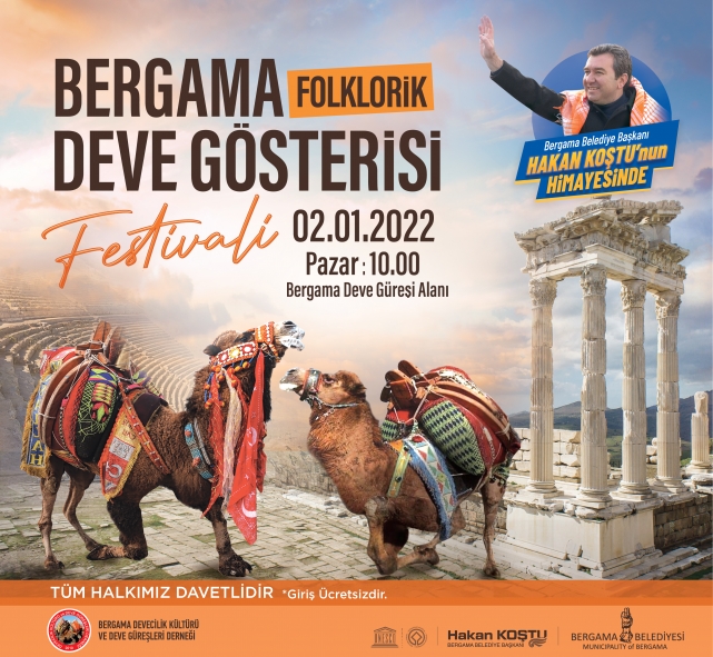Bergama Belediyesi’nin katkılarıyla organize edilen güreşlerde Ege, Akdeniz ve Marmara bölgelerinden gelecek olan yaklaşık 100 pehlivan deve güreşecek. bergama Devecilik Kültürü ve Deve Güreşleri Derneği ile işbirliği içerisinde düzenlenen ve girişlerin ücretsiz olduğu güreşlere tüm vatandaşları davet eden Belediye Başkanı Hakan Koştu, “Ege bölgemizin en köklü geleneklerinden birisi olan deve güreşi Festivali için hazırlıklarımızı hızla tamamlıyoruz. Kapalı Pazaryeri karşısı Deve Güreş Alanı’nda en güçlü develer arenaya çıkacak. Bölgemizin en iddialı güreşlerine sahne olacak bu organizasyonumuza tüm halkımızı bekliyoruz” dedi.