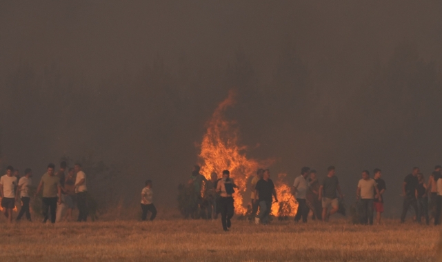 Bir arıcının yanan kovanlarıSarnıç'ta arıcılık yapan Kemal Korkmaz ise alevlerden kaynaklı 80 kovanının yandığını, 20-30 kovanı kurtarabildiğini belirterek, "Yapacak bir şey yok. Masrafım 500 bin liradan aşağı yoktur. Kovanlarım yandı, her şeyim yandı. Üzgünüm." ifadelerini kullandı.Sarnıç'ta tedbiren elektrik kesintisi yaşandıSarnıç Mahallesi'nde tedbir elektrik kesintisi uygulandı.Alevlerin çevredeki evleri tehdit etmesi nedeniyle polis ve jandarma ekipleri vatandaşları alandan uzaklaştırdı.Alevlerin evlere sıçramaması için Orman Bölge Müdürlüğü ve itfaiye araçlarıyla TOMA'larla yangın ile evler arasına set kuruldu.Güvenlik güçleri, alevlerin yakın olduğu Sarnıç Mahallesi Çamlık Caddesi üzerindeki evleri tahliye etti.Yangına gece görüşlü helikopterlerle müdahale yapıldı.İl Emniyet Müdürü Celal Sel ve İl Jandarma Komutanı Tuğgeneral Osman Kılıç ekiplerinden bilgi aldı. Gece saatlerinde yerleşim yerlerini tehdit yangın sebebiyle bölge tedbir amaçlı boşaltıldı. Ekiplerin yoğun müdahalesi sonucu alevler yerleşim yerlerine sıçraması engellendi.