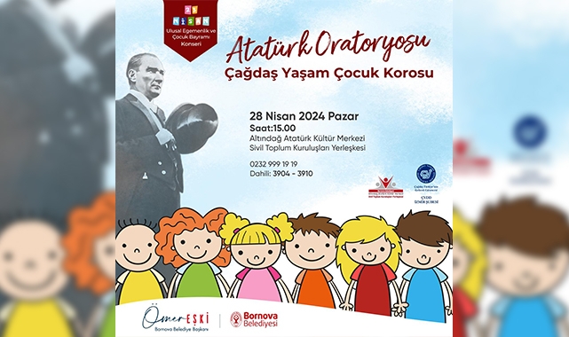 Çağdaş Yaşam Çocuk Korosu tarafından sahnelenecek Atatürk Oratoryosu’nu izlemek isteyenler, Bornova Belediyesi’nin 0 (232) 999 19 19 numaralı telefonunu arayıp, dahili 3904 veya 3910’u çevirerek iletişime geçebilecekler.