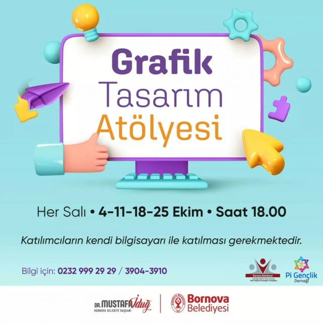 Atölye çalışmalarından yararlanmak isteyen Bornovalılar bilgi almak için 0 232 999 29 29 numaralı hattan dahili 3904 ve 3910’u arayabilir.