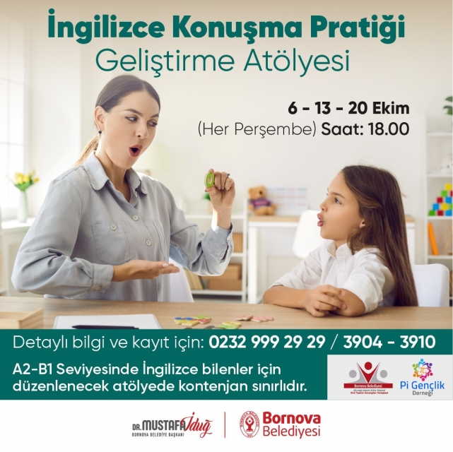İngilizceyi günlük hayatında pratik olarak uygulama fırsatı yakalayamayan kişilere yönelik olarak İngilizce konuşma pratiği atölyeleri düzenlenecek. İngilizce’yi A2/B1 düzeyde bilenlerin dil becerilerini geliştirmesi ve konuşma pratiği yapması için hazırlanan konuşma kulüpleri 6- 13 ve 20 Ekim'de yapılacak.