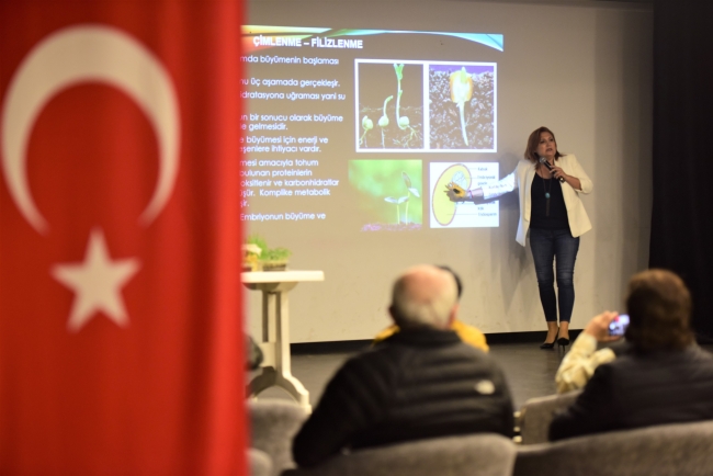 Bornova’nın kırsal mahallelerinden yerel üreticilerin yanısıra doğal tarım gönüllüsü Bornovalılar Uğur Mumcu Kültür Merkezi Çok Amaçlı Salonu’nda gerçekleşen eğitime yoğun ilgi gösterdi.