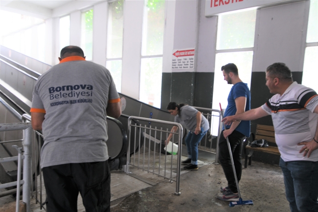 Pazaryerlerini basınçlı suyla baştan aşağı temizleyen Bornova Belediyesi Temizlik İşleri Müdürlüğü’ne bağlı ekipler, özel temizlik ürünleri kullanılarak uzun süredir zemine işlemiş olan lekeleri temizliyor. Binaların fiziki eksikliklerin tamamlanması için de hızlı bir çalışma başlatan Bornova Belediyesi, Merkez Pazaryeri’ndeki arızalı yürüyen bandı da yeniledi. Üst kattaki tekstil ürünlerinin satıldığı tezgahlara erişimi sağlayan yürüyen bandın yanı sıra diğer aksaklıklar da giderildi. Merkez Pazaryeri’nde uzun süredir kırık olan camların yenileri yerlerine takıldı.