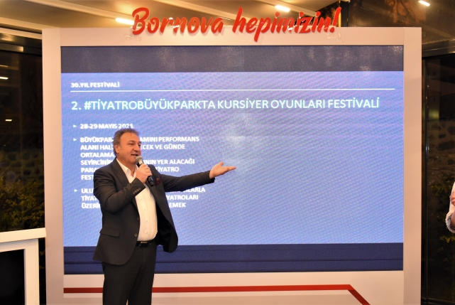 ‘BBŞT, Başarılı çalışmalara imza atıyor’BBŞT’nin 30 yıl içinde başarılı işler yaptığını ifade eden Bornova Belediye Başkanı Dr. Mustafa İduğ, “Tiyatro insanı insanla anlatma sanatıdır. Bornova Belediyesi Şehir Tiyatrosu oyuncuları da bunu başarılı bir şekilde yapıyor. 30 yıl içinde yaptığınız işlerle tiyatroda Bornova’nın adını duyurdunuz. Bu ülkede tiyatro yapmanın pek çok zorluğu var. Biz yerel yönetimlere bu noktada büyük görev düşüyor. Bornova büyüyen bir kent. Üniversiteler ve öğrencileriyle gelişen bir ilçeyiz. Bunun için de BBŞT’yi daha fazla kişiye tanıtmayı, kursiyer sayılarımızı arttırmayı hedefliyoruz” dedi. 30. yıl etkinlikleri için sunum yapan BBŞT Genel Sanat Yönetmeni Onur Erdoğan ise Başkan İduğ’a gösterdiği destek için oyuncular adına teşekkür etti.