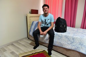 Bornova Belediyesi'nin 'Güvenli Aile' projesine dahil olarak İzmir'deki yeni evine kavuşan Samet Şafak Ertekin, odasına yerleşip derslerini çalışacağı masasının başına geçti. Babası Cengiz Ertekin ve evinin kapılarını kendilerine