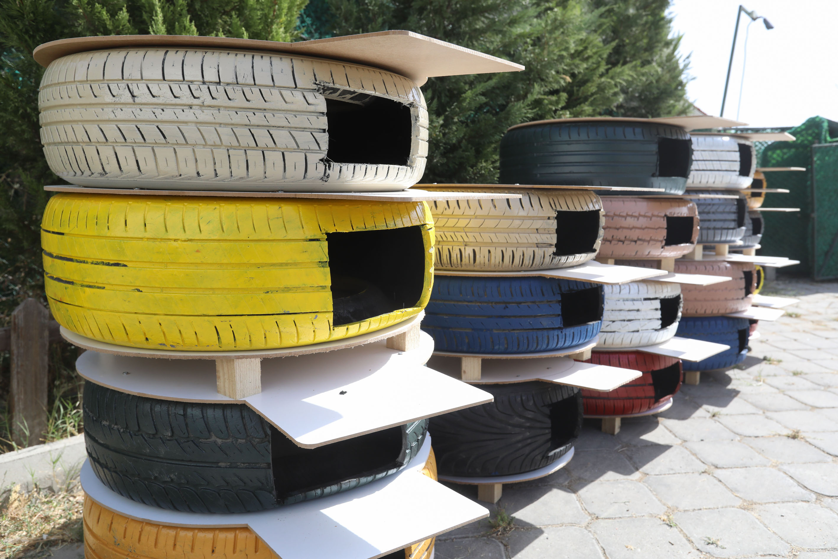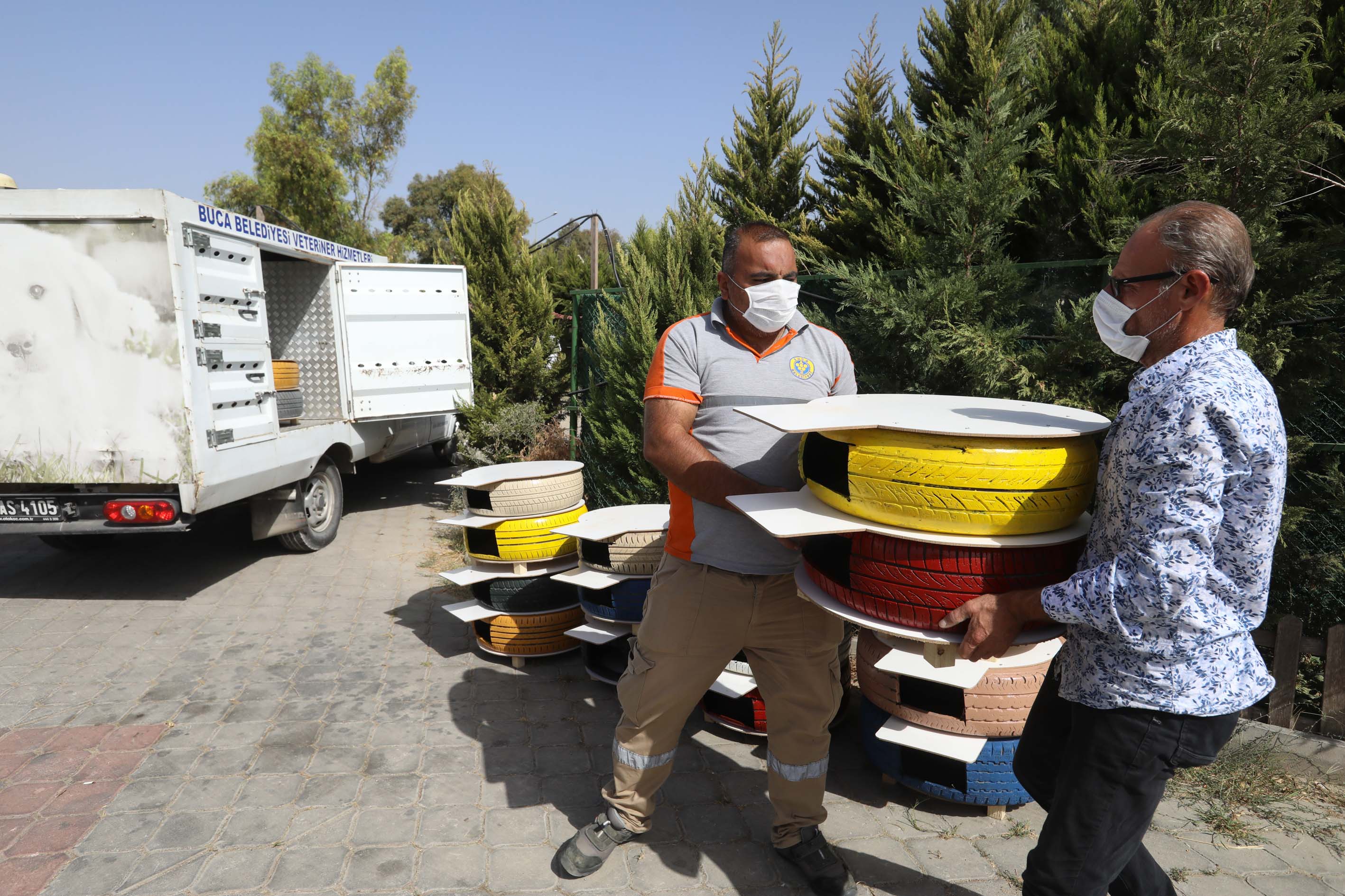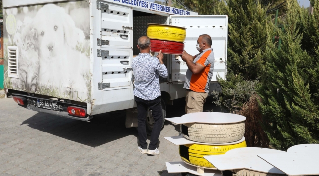 Sokak kedilerinin kış aylarında soğuk ve yağışlı havadan korunmalarını sağlamak amacıyla kullanılmayan araba lastikleri birer yuvaya çevrildi. Sıfır Atık Projesi’ni de desteklemek amacıyla yürütülen projede, ilk etapta 20 adet kedi evi hazırlandı. Hazırlanan kedi evleri, kent merkezindeki parklara konumlandırılarak can dostlara güzel yuvalar oluşturuldu.