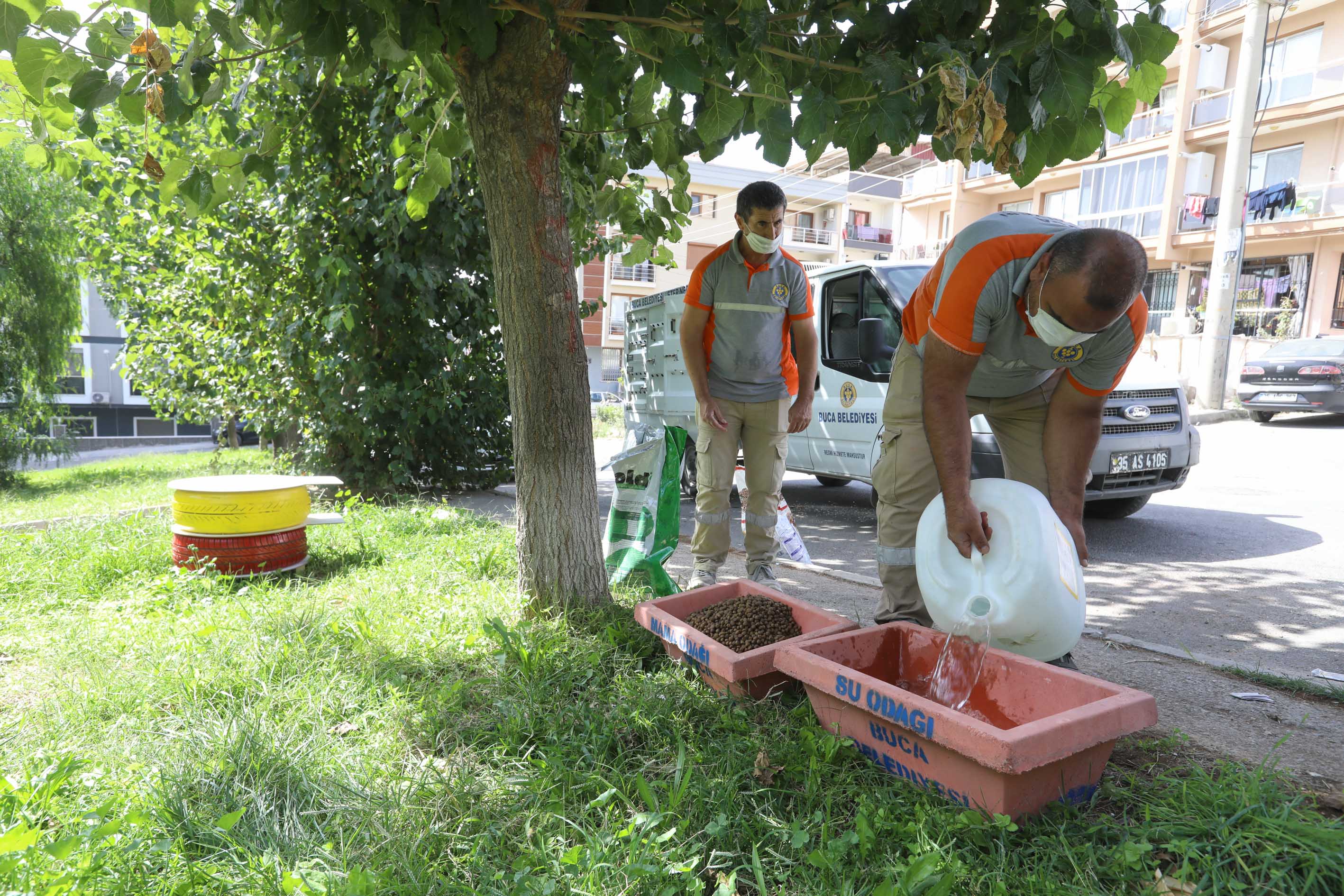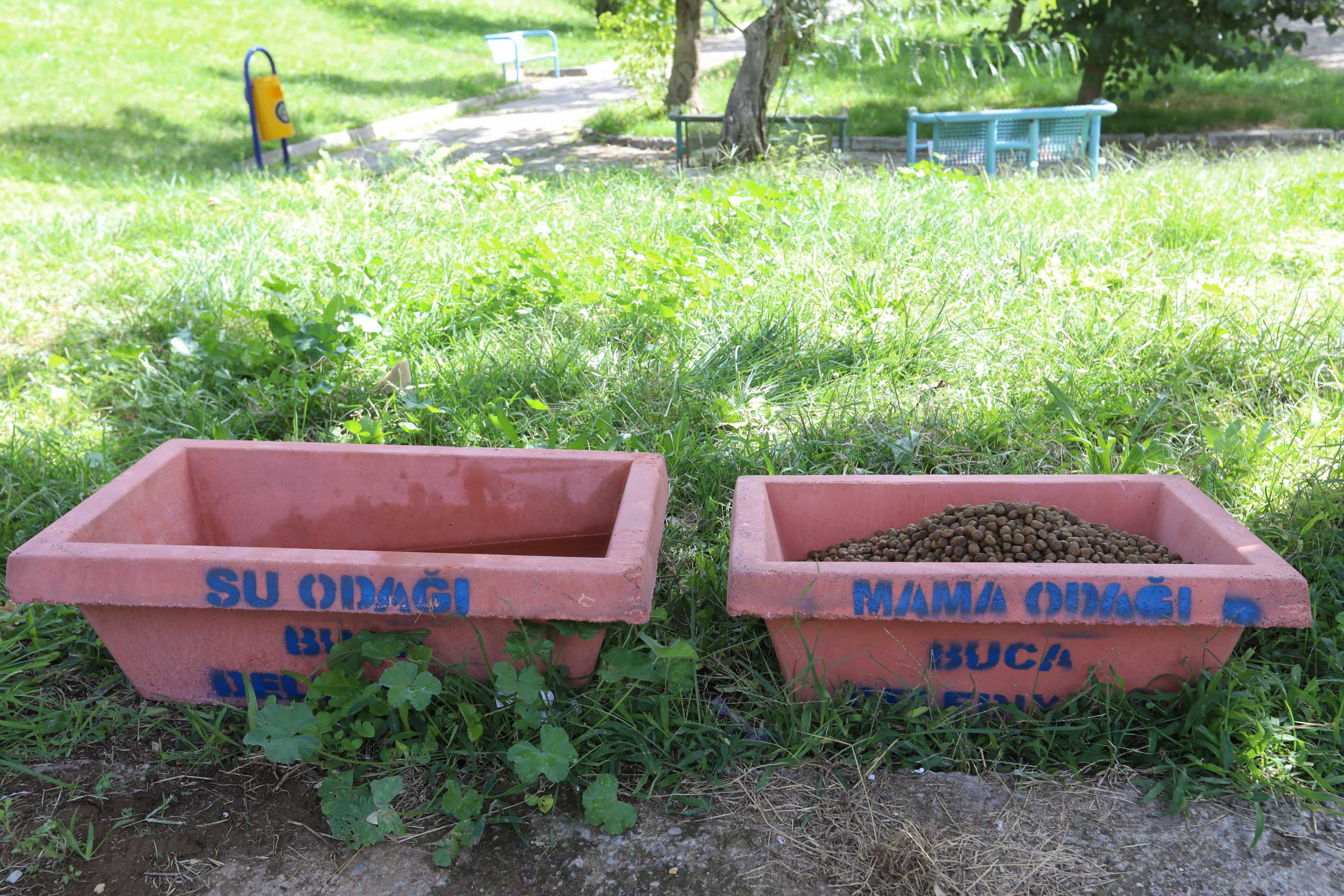 Kedi evi çalışmasının yanı sıra, can dostlar için dayanıklı betondan mama ve su kapları hazırlandı. Toplamda 50 adet temin edilen beton kaplar, beslenme odaklarına verilen zararı ortadan kaldırmayı hedefliyor. Özellikle içerisine konulan mama ve suların devrilmesini, kırılmasını, dağıtılmasını ve doğal yollarla zarar görmesini engelleyecek beton beslenme odakları Buca’nın çeşitli bölgelerine yerleştirildi.