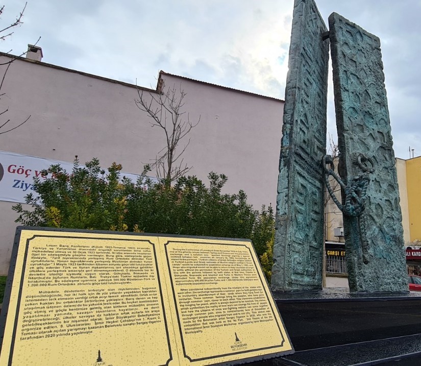1923 Türkiye-Yunanistan nüfus mübadelesinin sosyal alandaki yansımaları İzmir Büyükşehir Belediyesi tarafından Buca’da dikilen "Doğduğum Evin Kapıları" (The Doors of The Native Home) adlı anıtla sembolleşti. Belaruslu sanatçı Sergei Oganov’un dönemin trajedilerini, üzerinde iki ayrı kültürün motifleri bulunan ve zincirle birbirine bağlı iki kapıyla ölümsüzleştirdiği eser Buca Kasaplar Meydanı’ndaki Mübadele ve Anı Evi'nin önünde yerini aldı. Bir tarihi ölümsüzleştiren ve iki halk arasındaki dostluk bağlarını güçlendiren anıtın açılış törenine İzmir Büyükşehir Belediye Başkanı Tunç Soyer, CHP İzmir Milletvekili Kamil Okyay Sındır, Buca Belediye Başkanı Erhan Kılıç, göçmen dernekleri başkanları ile temsilcileri, bürokratlar, CHP'li ilçe başkanları ve vatandaşlar katıldı. Sanatçı Evrim Ateşler açılışta Bir Fırtına Tuttu Bizi ve “Kai Giati De Mas To Les” adlı eserleri seslendirdi.