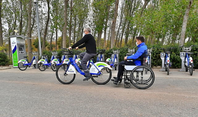 İzmir Büyükşehir Belediye Başkanı Tunç Soyer görme engelli bireylerin, bisiklet keyfini özgürce yaşamaları için Türkiye’de ilk defa hayata geçirilen iki sürücülü (tandem) bisiklet uygulamasının ardından şimdi de tekerlekli sandalyelerle bisiklet arasındaki engeli kaldırdı. İzmir Büyükşehir Belediyesi tarafından Türkiye’de ilk defa başlatılan uygulama sayesinde bedensel engeli bireyler, Akıllı Bisiklet Kiralama Sistemi (BİSİM) istasyonlarından tedarik edecekleri özel parça sayesinde tekerlekli sandalyelerini bisikletlere bağlayıp sevdikleriyle bisiklet dostu şehir İzmir’in tadını çıkarabilecek.
