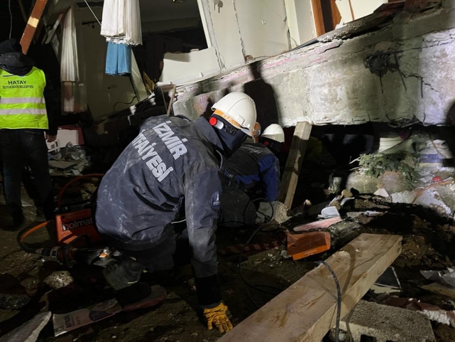 İzmir Büyükşehir Belediyesi İtfaiye Dairesi Başkanı İsmail Derse, “İlk ekibimiz Osmaniye'ye geldi ve hemen enkazlarda çalışmalara başladı. Çadır kent planlamasıyla özellikle barınma ihtiyacı olan insanlara yardım elimizi uzattık. İnsani yardım malzemeleri dağıtıldı” dedi. Diğer ekibin Hatay'da arama kurtarma çalışmalarında 3 kişiyi kurtardığını söyleyen İsmail Derse, “Biri 3,5 yaşında bir çocuğumuz, biri 47 yaşında kadın ve 55 yaşında bir erkek vatandaşımızı canlı olarak çıkarttık. İzmir'den tekrar destek ekipleri gönderdik. Hem karayolu hem uçakla Hatay'a geldiler. Burası en sıkıntılı bölgelerden biriydi. Hatay İtfaiyesi'nin de çok büyük bir enkaz altında kaldığı ve yardıma ihtiyaçları olduğu ortadaydı. Bu bölgeyi de desteklemiş olduk. İskenderun bölgesinde de yangın söndürme çalışmamız var. 54 metrelik köpük kulemiz çalışmasını sürdürüyor. Akşam saatlerinde oradaydım, yangın kontrol altına alındı” dedi.