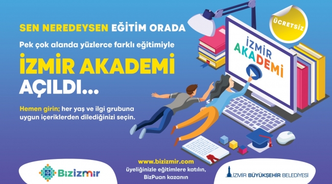 İzmir Büyükşehir Belediyesi pandemi döneminde eğitimin önündeki engellerin kaldırılması amacıyla “Sen Neredeysen Eğitim Orada” sloganıyla İzmir Akademi online eğitim portalını açtı. Biz İzmir dijital platformu üzerinden “Katıl” sekmesinden ulaşılabilen portalda her yaş ve ilgi grubuna uygun 400 farklı program yer alıyor. Biz İzmir üyeliği olan herkes eğitimlere katılabiliyor. Eğitimler aynı zamanda Biz Puan kazandırıyor. Biz Puan sistemine dahil olan yurttaşlar kazandıkları puanlarla daha ileri seviyedeki eğitim programlarına ücretsiz katılabiliyor.