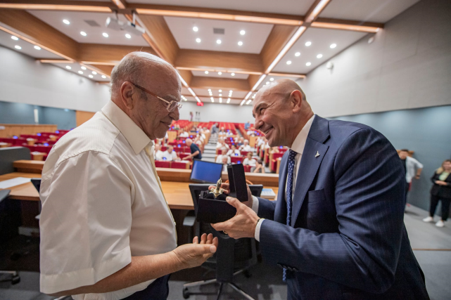İzmir Büyükşehir Belediyesi, Temmuz ayı olağan meclis toplantısı öncesinde Kültürpark'taki 4 No'lu holde Türkiye’nin felsefe alanındaki önemli isimlerinden Prof. Dr. Ahmet Arslan’ı ağırladı. Prof. Dr. Arslan, Cumhuriyet Halk Partisi (CHP) Meclis Grubu temsilcilerinin davet edildiği oturumda “Cumhuriyetin 100. yılında Türkiye'de Felsefe” başlığıyla sunum yaptı. Buluşmaya ev sahipliği yapan İzmir Büyükşehir Belediye Başkanı Tunç Soyer sunumun ardından Prof. Dr. Arslan’a Saat Kulesi maketi takdim etti.