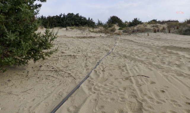 "BİNLERCE KİŞİ GELİYOR BU PLAJA, ELEKTRİK KABLOLARI KUMLARIN ÜSTÜNDE"Özbalık, firmanın önce 4 dönümlük alanı tahrip ettiğini, sonra hemen bitişiğindeki 8 dönümlük alanda çalışmaya başladığını anlatırken şunları söyledi:"Sonradan farkına varmışlar. 'Bizim yerimiz burası değil, diğer taraf' deyip oraya geçtiler. Orayı da tahrip ettiler. İki tarafta da sehven bir tahribat var. Bir tarafta tamamen sehven, diğer tarafta da kiraladıklarını söyleyerek yaptıkları bir tahribat var. 6 metrekarelik bir büfe için bu kadar yer tahrip edilmez. Bir de elektrik kabloları var ortalıkta. Yarın öbür gün yanlışlıkla bir çocuk bir çivi çakmaya ya da kesmeye kalksa çocuk canından olur. Binlerce kişi ağırlanıyor burada. Yanlışlıkla o kablolara dokunulduğu ya da kesmeye kalkıldığı anda canından olur insanlar. Bunun dahi önlemi alınmamış. Kablolar açıkta, toprağın üzerinden gidiyor.”
