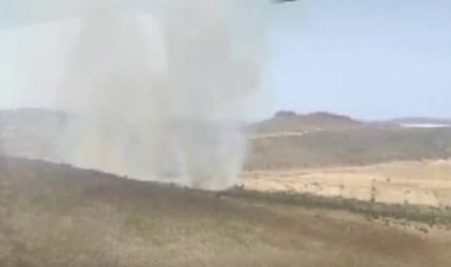 İzmir'in Çeşme ilçesinin Alaçatı ile Zeytineli arasında yangın çıktı. Alevlere havadan ve karadan müdahale ediliyor.