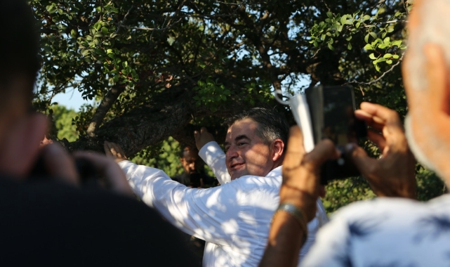 Törende sakız ağaçlarına ilk çiziği atan Çeşme Belediye Başkanı M. Ekrem Oran, “Kurduğumuz Tarımsal Hizmetler Müdürlüğümüz ile Çeşme’deki üreticilerimizi destekliyor. Tohum merkezimizde ürettiğimiz Karakılçık buğdayı, Çeşme Anasonu, Çeşme Kavunu, Beyaz soğan gibi yerel değerlerimizi piyasanın üzerinde bir bedelle alım garantisi vererek çiftçilerimize dağıtıyoruz.